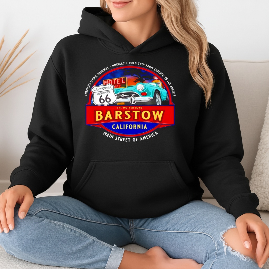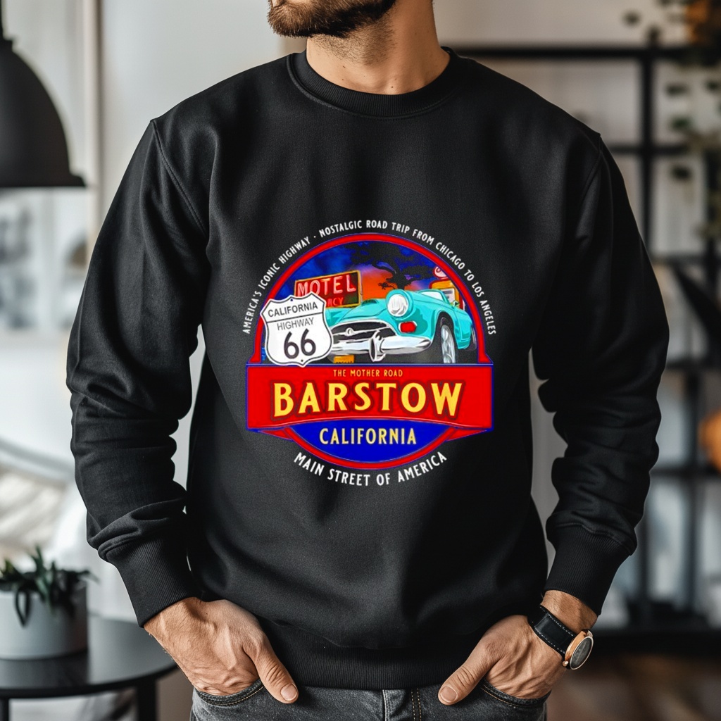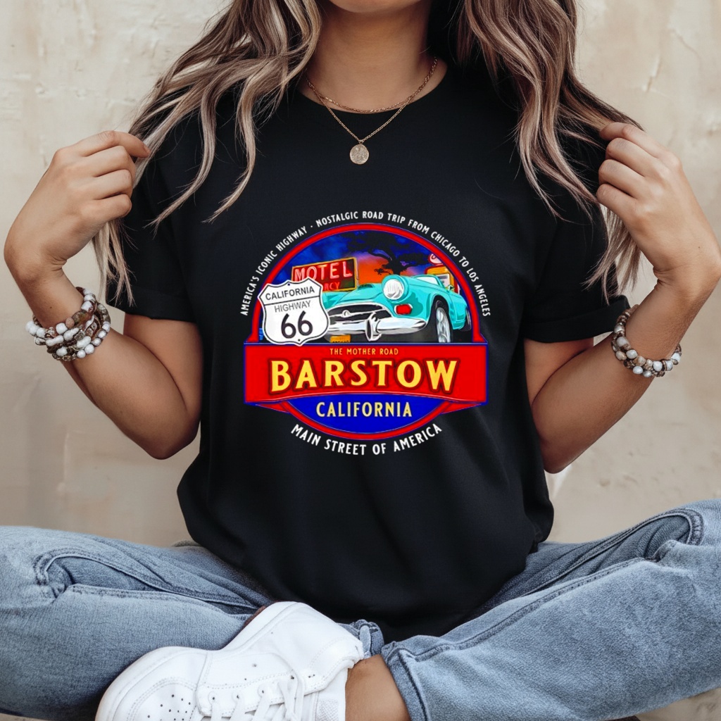 Is this a specific travel souvenir? Yes, this Barstow Route 66 shirt is designed as a souvenir specifically for Barstow, California, a major historic stop on Route 66.