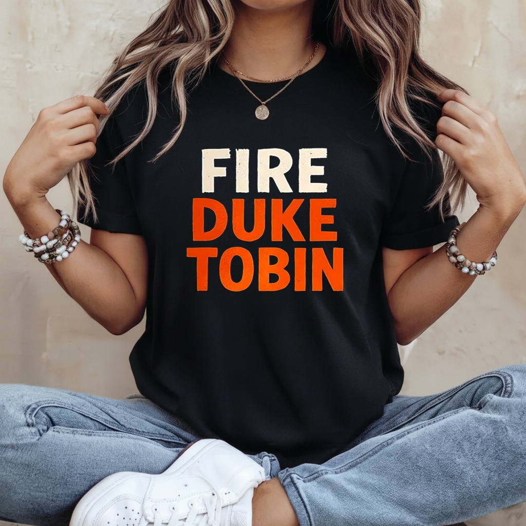 This Cincinnati Bengals NFL fire Duke Tobin letter shirt is a bold statement piece for the die-hard fan. The design captures the essence of team loyalty with its striking imagery. The shirt features a powerful depiction of the Bengals’ decision to part ways with Duke Tobin, igniting passions and emotions among fans. The vibrant colors and intricate details of the design make it a standout piece for any true supporter.