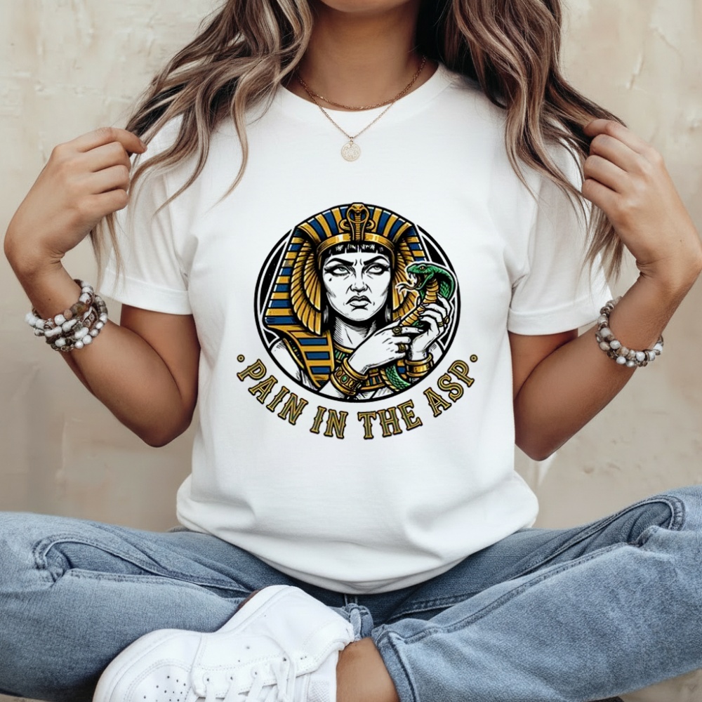 Cleopatra VII was a linguist, a naval commander, and a diplomat who charmed the most powerful men in Rome. She held an empire together through sheer will and intelligence. But let’s be honest, that final day with the cobra? That was a real “Pain in the Asp.” This shirt takes one of the most famous deaths in antiquity and turns it into a piece of witty wordplay that history buffs will absolutely adore.