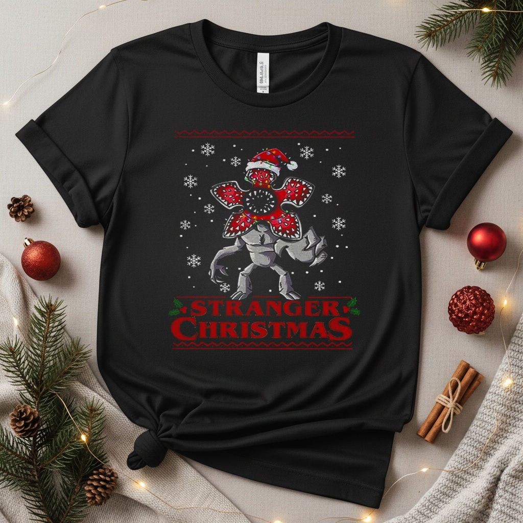 But the appeal of this shirt extends beyond just the aesthetics. It represents a shared love for a cultural phenomenon. Wearing the Demogorgon Christmas shirt is like flashing a secret signal to other fans, instantly creating a sense of camaraderie and connection. It’s a conversation starter, an icebreaker, and a symbol of belonging. You’ll find yourself swapping favorite moments from the show, debating character arcs, and perhaps even planning your own “Stranger Things” themed holiday party. The shirt embodies that fun, shared experience of the show, and brings everyone together for some holiday cheer!
