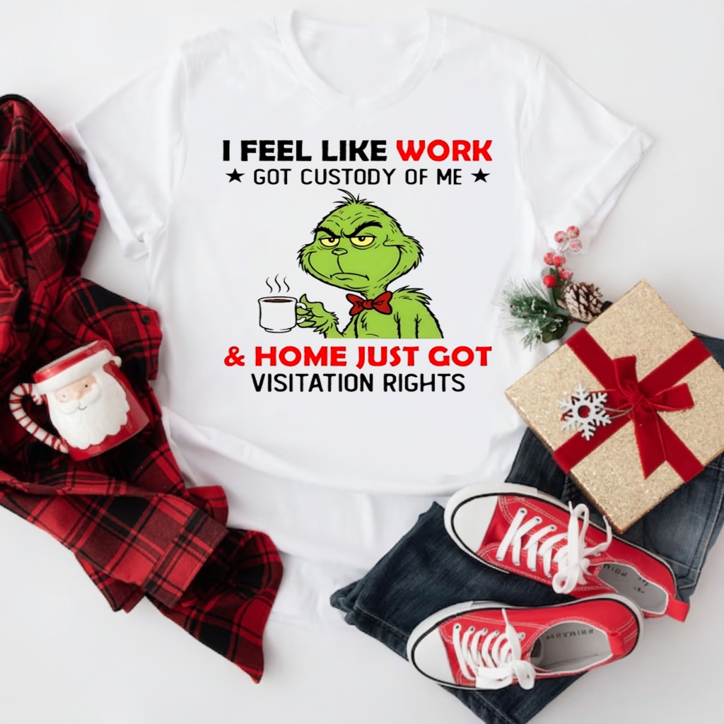 Grinch, I feel like work got custody of me and home just got visitation rights shirt. Okay, so here’s the thing: I caught myself scrolling online, hunting for a t-shirt – something comfy, you know? My gaze landed on one with a picture of the Grinch. It was just an image, a small detail really, nothing special. Then, the words “work got custody, home visitation” were emblazoned on the shirt. I stopped. It hit me, like a brick of reality dropping on my head. Honestly, the statement wasn’t even meant to be profound, yet it captured something I’d been feeling for ages.