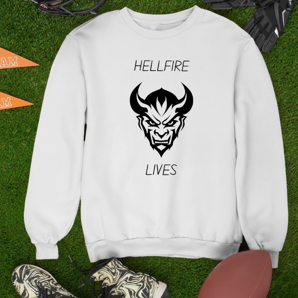 Striking Hellfire Lives graphic symbolizing rebellion and strength