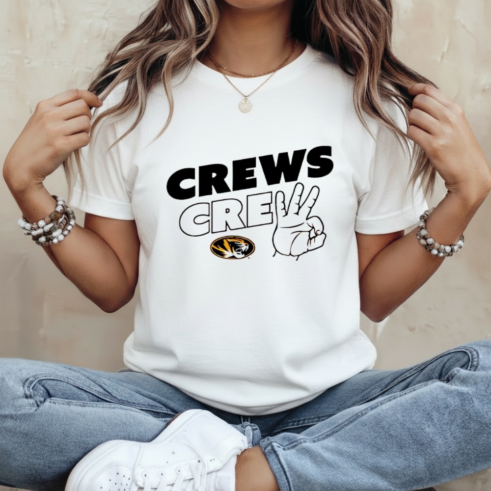 It’s time to join the “Crews Crew” and cheer on one of Mizzou’s most dangerous sharpshooters. This design is a fun, name-based tribute to Jacob Crews, perfect for the fan who loves deep threes and high-energy basketball at Mizzou Arena.