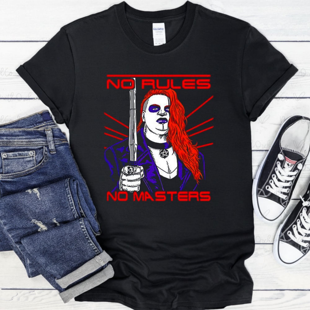 This isn’t a novelty shirt or a passing slogan. It’s a statement worn by people who live by it. Straightforward, wearable, and unapologetic, the Kathryn Von Goth No Rules No Masters Shirt is designed for those who prefer their clothing to say exactly what they mean.