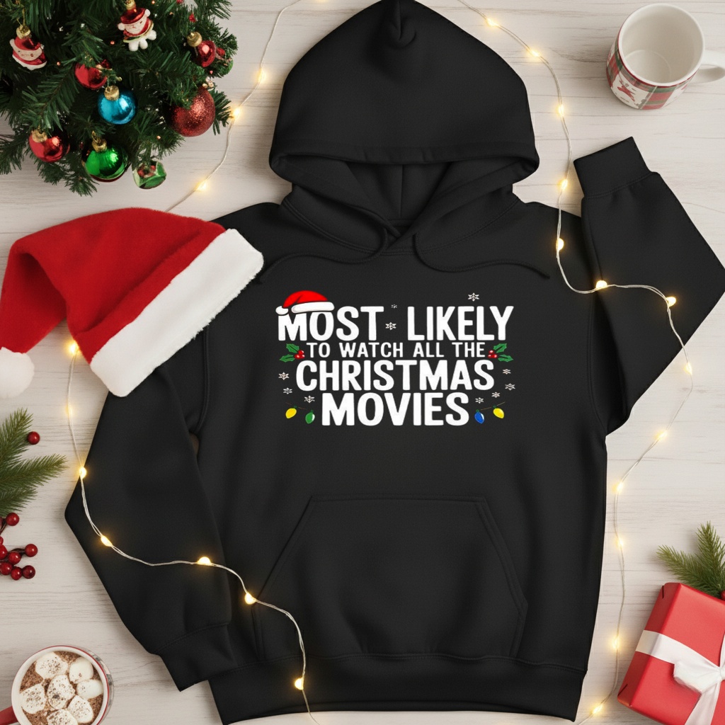 Most Likely To Watch All The Christmas Movies Xmas Matching T-shirt