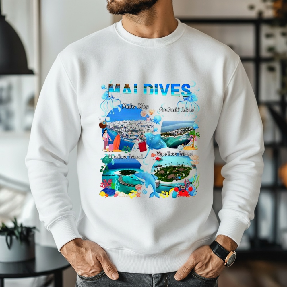 Maldives collage beach scenes Male City Maafushi Vaadhoo Biyadhoo island shirt