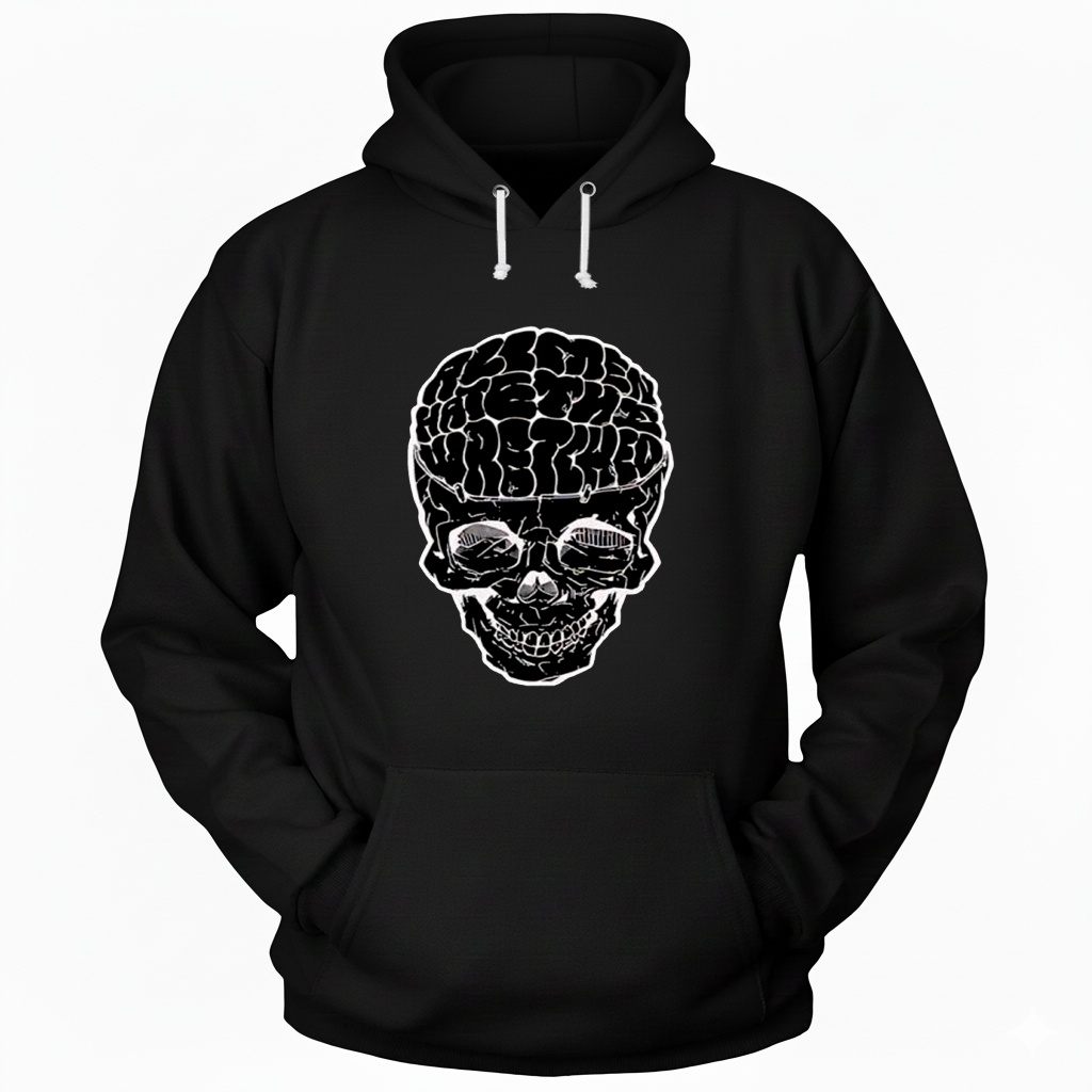 The word “wretched” is particularly evocative. It’s not just “bad” or “annoying”; it suggests something deeply unpleasant, something that inspires a visceral negative response. Coupled with the imagery of a skull, it paints a picture of something undesirable. So, what is it that -everyone- supposedly hates? The shirt, by its very nature, invites the wearer to become a participant in this implied “hate.” It suggests solidarity, a belonging to a group that shares a common disdain. The wearer effectively becomes a walking embodiment of this shared sentiment.