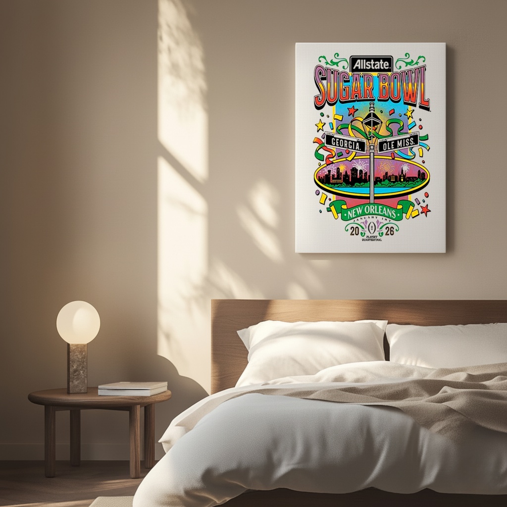 A1: It celebrates the NCAA 2026 Allstate Sugar Bowl matchup between the Ole Miss Rebels and Georgia Bulldogs, highlighting the rivalry and competitive spirit of the game.