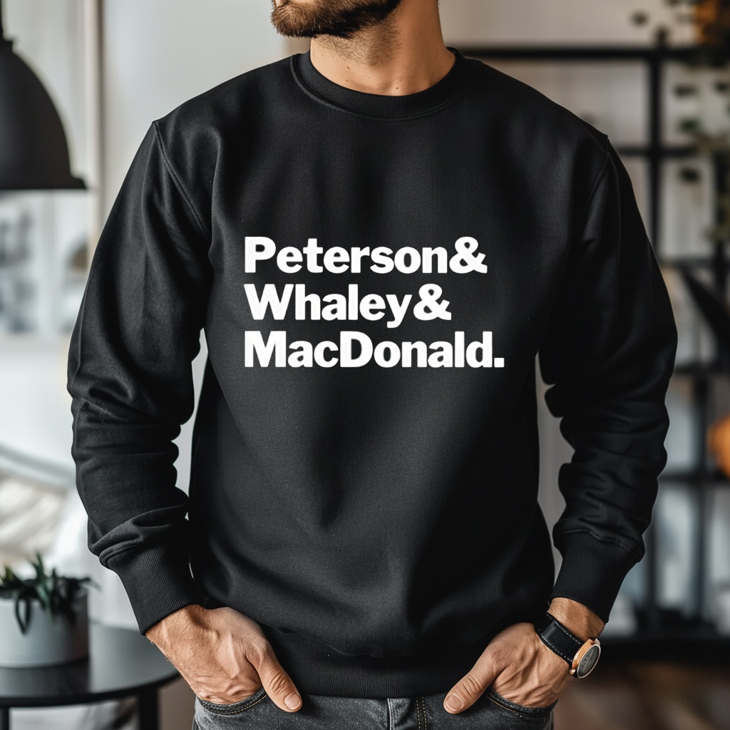 Sometimes the names say it all. This minimalist tee features a stacked typographic list of “Peterson & Whaley & MacDonald,” offering a clean, modern tribute to the trio that only true fans will recognize.
