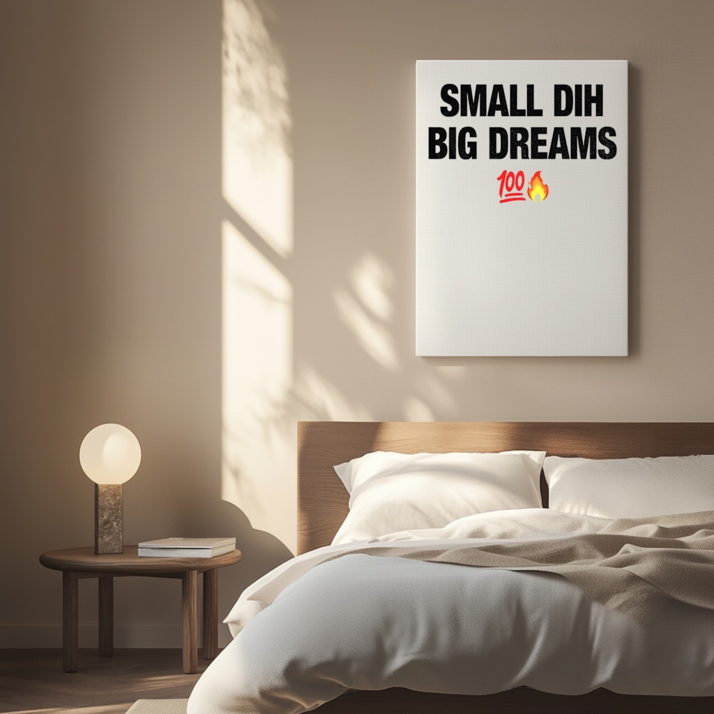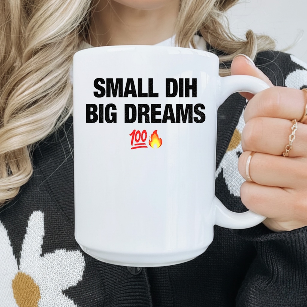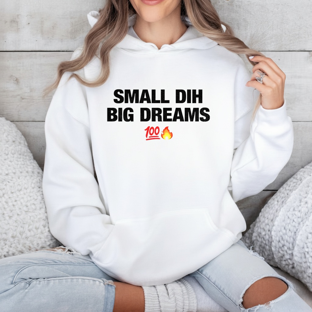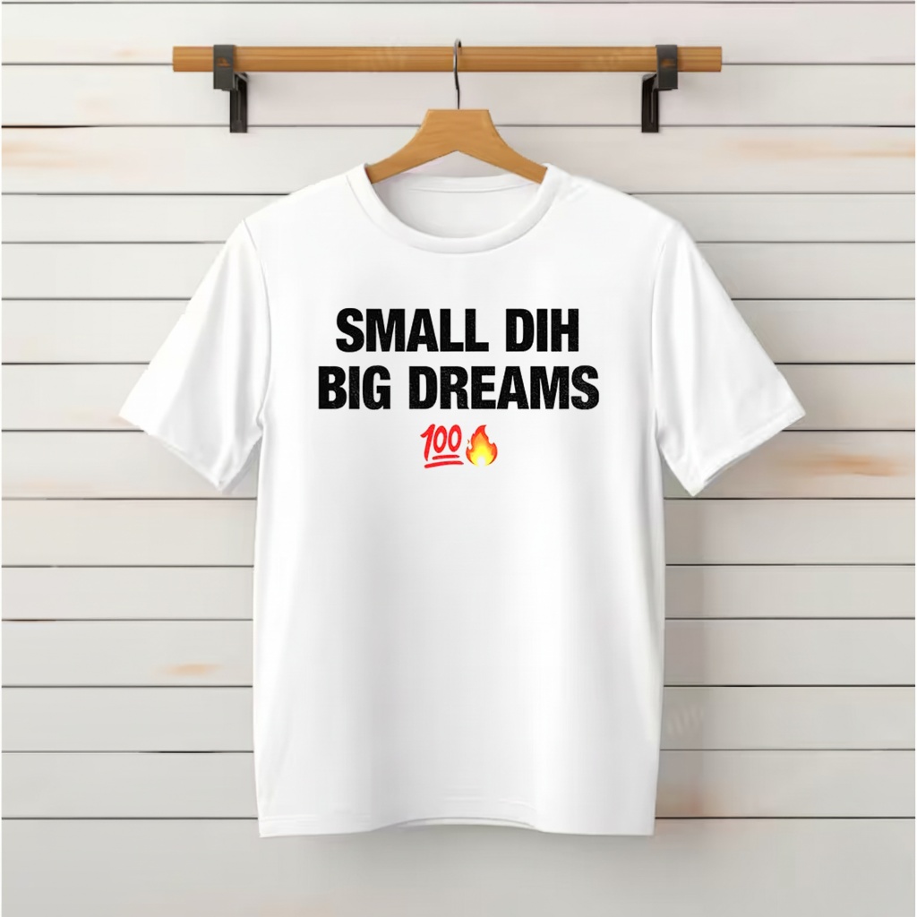 Fit / Print: Unisex style with DTG printed “Small Dih Big Dreams” meme graphic