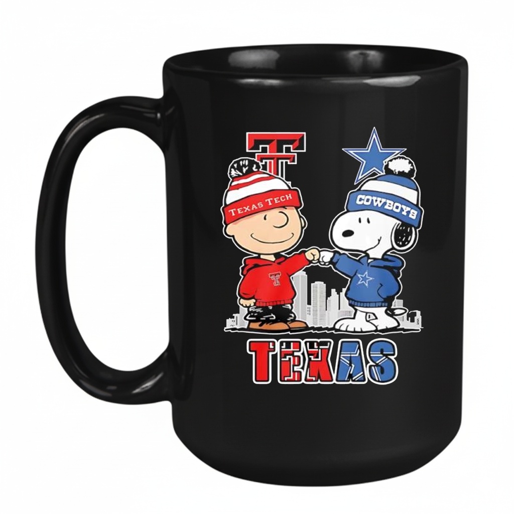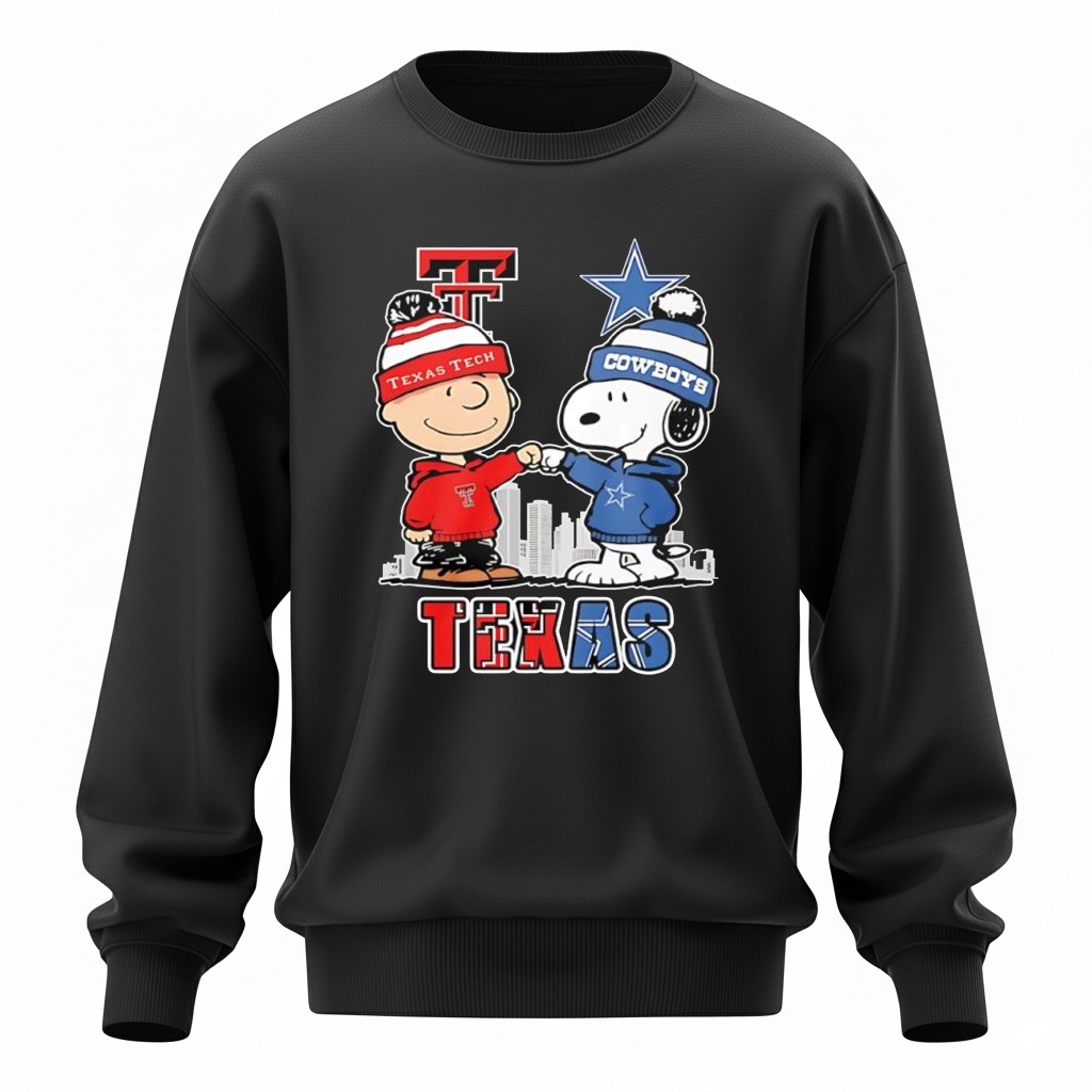 Snoopy and Charlie Brown bump Texas Tech Red Raiders and Dallas Cowboys shirt