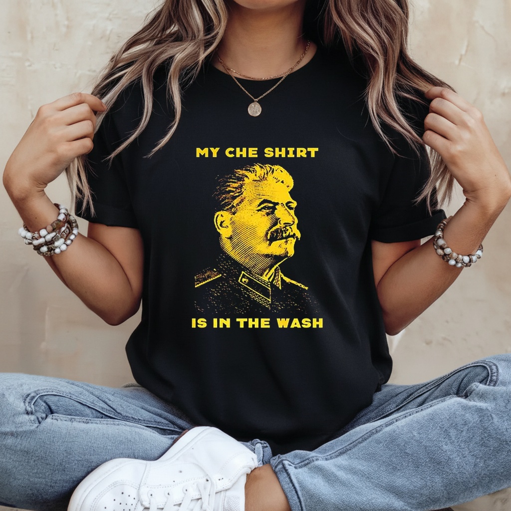 Featuring a unisex fit, the Stalin My Che Shirt Is in the Wash Shirt is designed to suit a wide range of body types. The classic silhouette pairs easily with jeans, jackets, or layered streetwear looks, making it a versatile option for those who enjoy expressive apparel. If your humor leans toward ironic, provocative, and smartly satirical, this shirt is a natural addition to your collection.