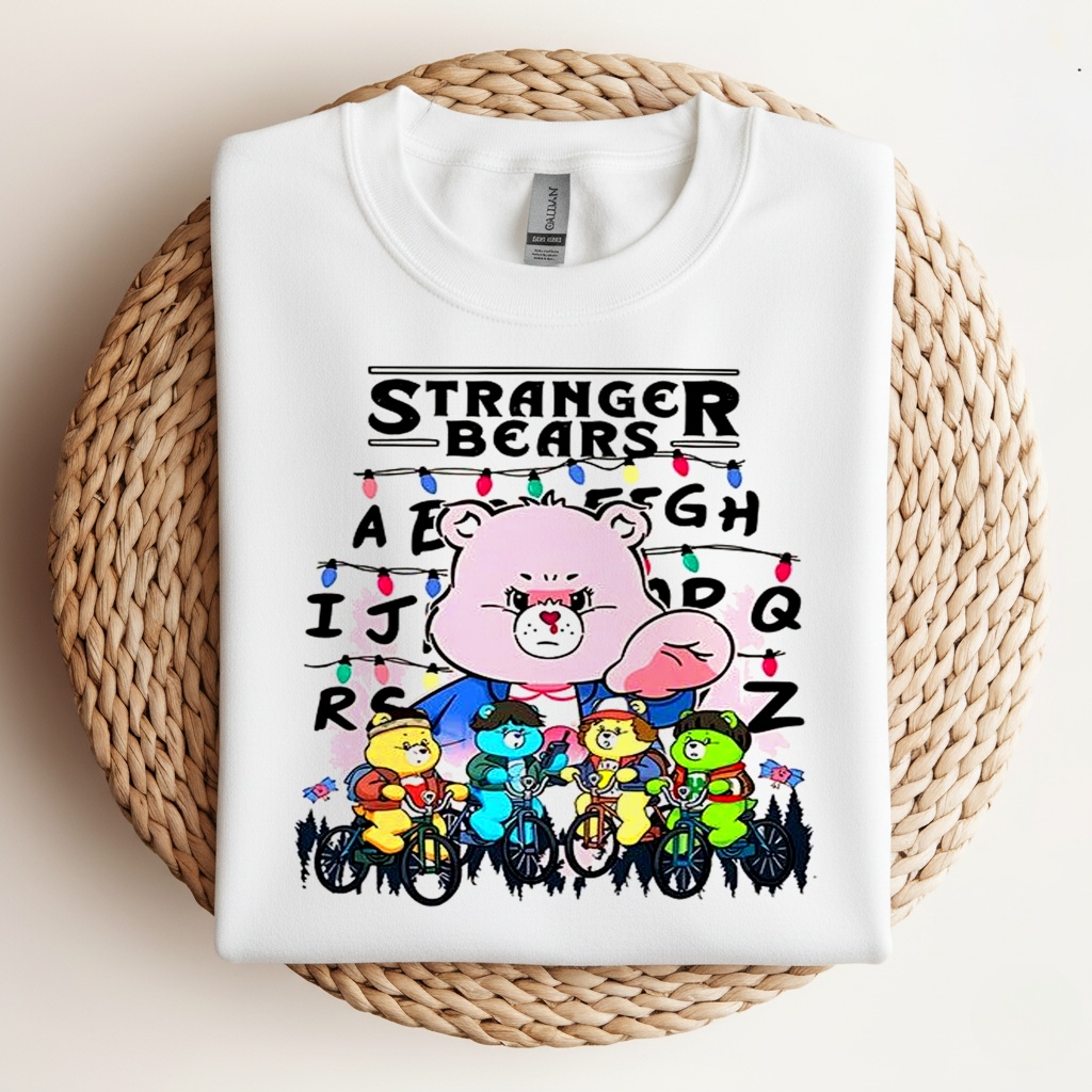 Dive into a world of whimsy and nostalgia with our Stranger Bears Character shirt. Let your inner child rejoice as you don this vibrant tee featuring a playful ensemble of quirky, lovable bear characters reminiscent of your favorite childhood cartoons. Crafted from premium cotton for unrivaled comfort, this shirt is a wearable piece of art that seamlessly blends style and nostalgia. Each character comes to life with intricate details and vibrant colors, making every wear a delightful trip down memory lane. Whether you’re a fan of retro aesthetics or simply appreciate unique, eye-catching designs, this shirt is sure to become a cherished addition to your wardrobe.