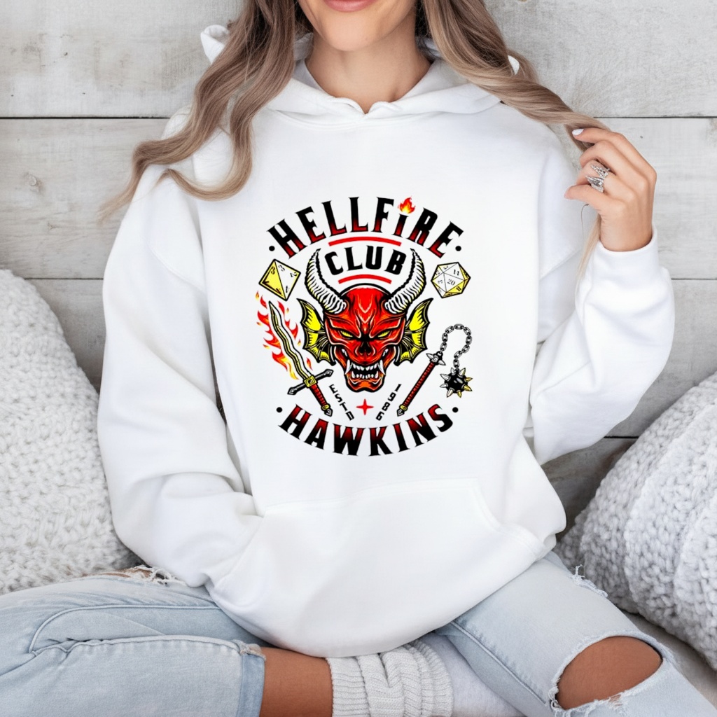 The Stranger Things Hellfire Club Hawkins Logo Shirt celebrates one of the show’s most iconic elements with a bold, logo-style design. Featuring the Hellfire Club emblem, this shirt is perfect for fans who love the mysterious, dramatic energy of Hawkins’ favorite Dungeons & Dragons-inspired club. Ideal for casual wear, fan conventions, or Stranger Things watch parties, it allows enthusiasts to showcase their fandom with style and attention to detail.