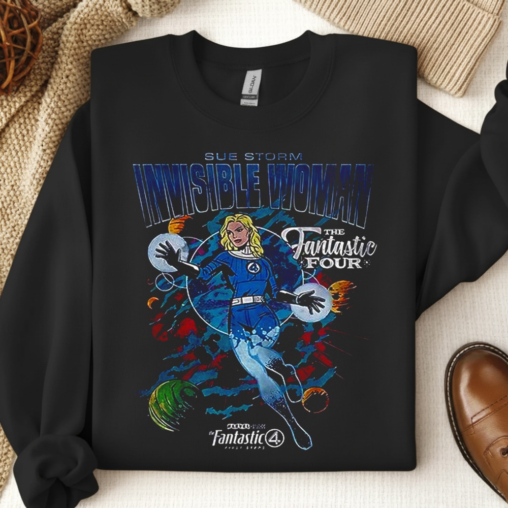 Sue Storm is more than just a member of a team; she is the emotional and defensive anchor of the Marvel Universe’s first family. This shirt pays homage to the Invisible Woman’s rich history, celebrating her evolution from a 1960s heroine to a modern icon of strength and resilience. The design draws heavily on the Golden and Silver Age comic aesthetics, offering a nostalgic visual that resonates with dedicated collectors and readers. It is designed for the fan who appreciates the source material—the ink, the paper, and the decades of storytelling that built the legends we love today. Whether you are revisiting classic issues or heading out for a casual afternoon, this tee serves as a statement of your deep appreciation for comic book culture.