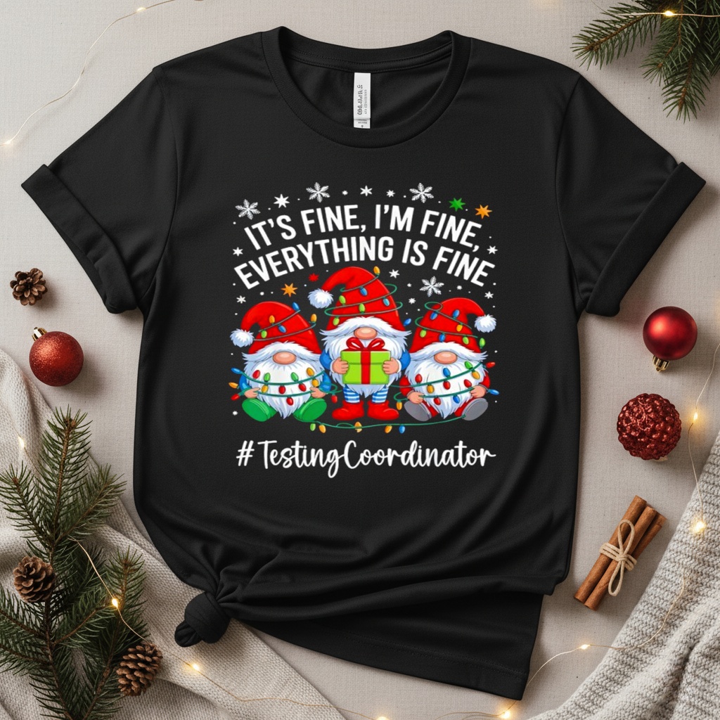 My sister, bless her ass, always sends me the most ridiculous Christmas cards. Last year it was a photo of her cat dressed as Santa, which, let’s just say, didn’t go over well with the feline in question. This year, though, the anticipation has been building. Knowing her, I figured it would be something outlandish, something that would make me chuckle and roll my eyes simultaneously. This year’s card, featuring a “Testing Coordinator Gnome Everything is Fine Funny Christmas shirt” had me bursting out loud with laughter when I ripped open the envelope. I mean, the sheer absurdity of it, the combination of festive cheer with a touch of professional chaos, it was perfectly her brand of humor.