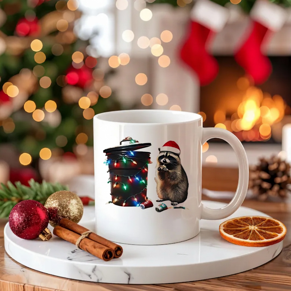 The humor in this design is also in the juxtaposition. Christmas is traditionally associated with images of angelic carolers, pristine snow, and perfectly wrapped gifts. This shirt, however, throws a wrench in that idyllic depiction, offering instead a raccoon amidst trash and twinkling lights. It’s a reminder that even within the most festive of settings, there’s always a touch of reality, a little bit of the everyday that grounds the celebrations. It speaks to the idea that it’s okay if your holidays aren’t picture-perfect, if there’s a bit of chaos, a little bit of mess. Embrace it! This shirt encourages a lighthearted approach to the season.