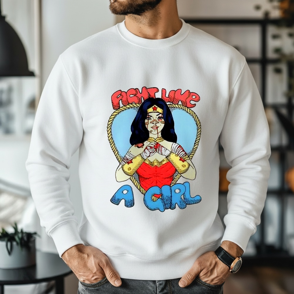 For decades, “fight like a girl” was thrown around as an insult. Then came Diana of Themyscira to prove that fighting like a girl actually means possessing god-like strength, unwavering compassion, and the ability to deflect bullets with your bracelets. This shirt reclaims that phrase with a punch of retro pop-culture nostalgia.
