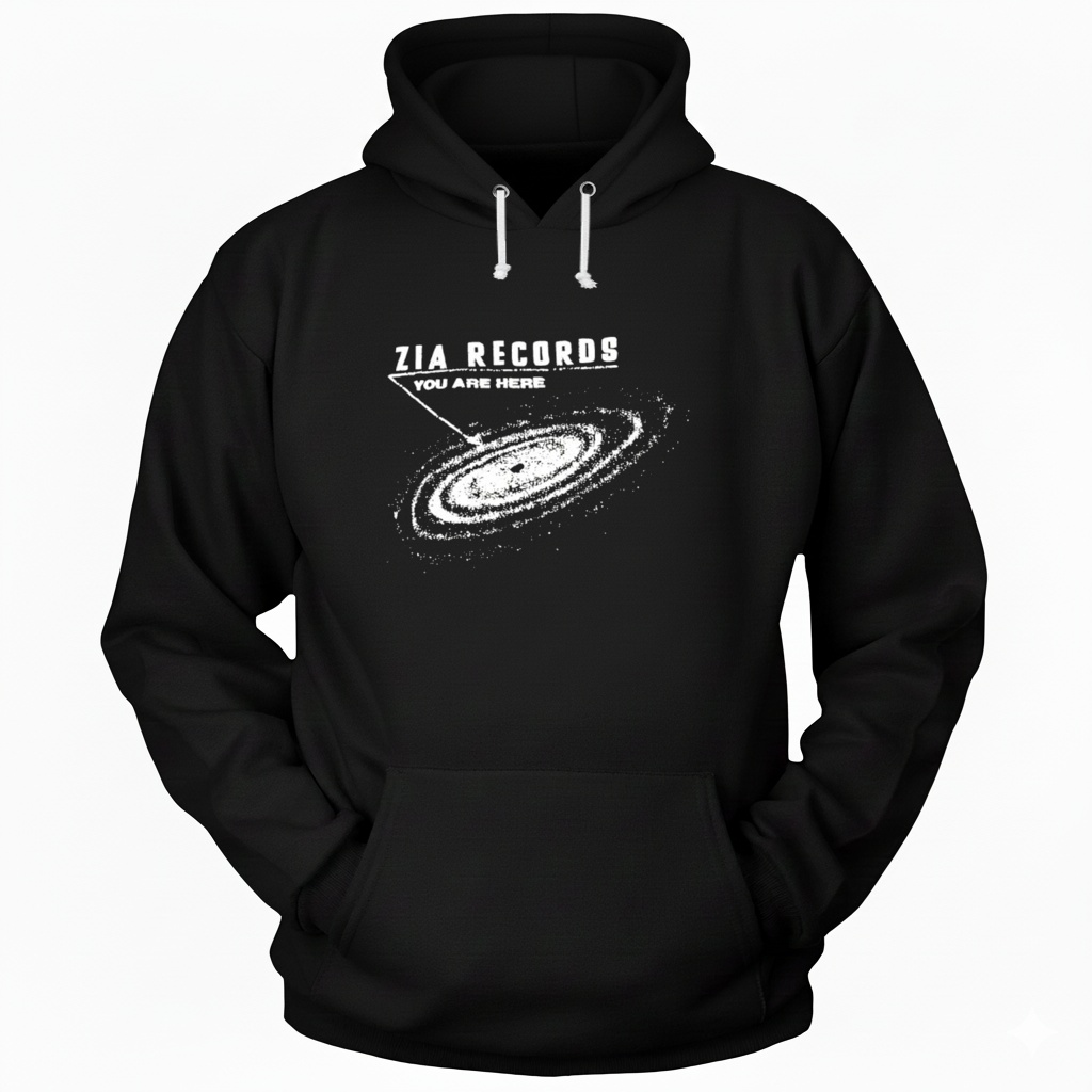 My gaze eventually landed on the merchandise wall, where various tees hung, each one a testament to musical adoration. It felt like a decision between family, all of them so good. There, nestled amongst band logos and quirky designs, was -the- shirt: the Zia Records You Are Here Shirt. Simple, yet iconic, it represented the very essence of the place. It had that vintage feel, the soft fabric that would eventually fade and soften with each wash, a constant reminder of my affinity for music. I picked one up, imagining my friend’s grin when he unwrapped it.